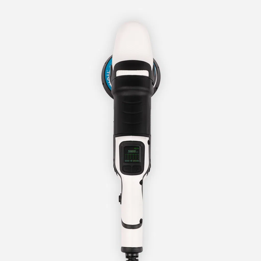 Den kraftfulla 1000 W-motorn med mjukstart ger dig bra kontroll redan från första varvet. Maskinen har låg ljud- och vibrationsnivå, vilket gör att du kan arbeta längre utan att bli trött i armarna. Den smarta digitala displayen visar aktuellt varvtal och varnar dessutom om du trycker för hårt – perfekt för att skydda både maskin och lack.