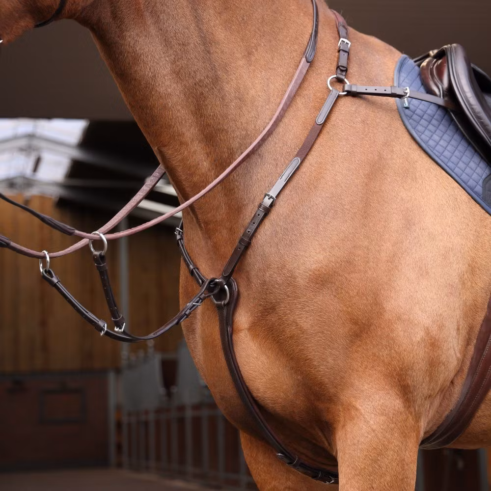 Velociti RAPIDA elastisk brösta ger stabilt stöd och hög komfort. Bred, vadderad nackdel för jämn tryckfördelning, elastiska insatser vid bogarna för följsam rörelse och stötdämpning. Helvadderad gjordrem med karbinhake samt avtagbar martingal. Justerbar passform, tillverkad i vegetabiliskt garvat läder med rostfria beslag.