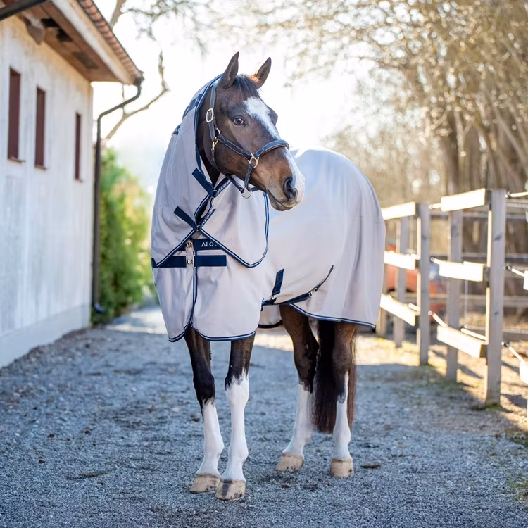 Fly Sheet från Aloga Equestrian är det ultimata sommartäcket. Det är designat för att ge lätt, andningsbart skydd mot insekter under varma dagar och är tillverkat i stickad, lätt polyester-mesh. Täcket är perfekt för användning under varma vår- och sommardagar och tidig höst.