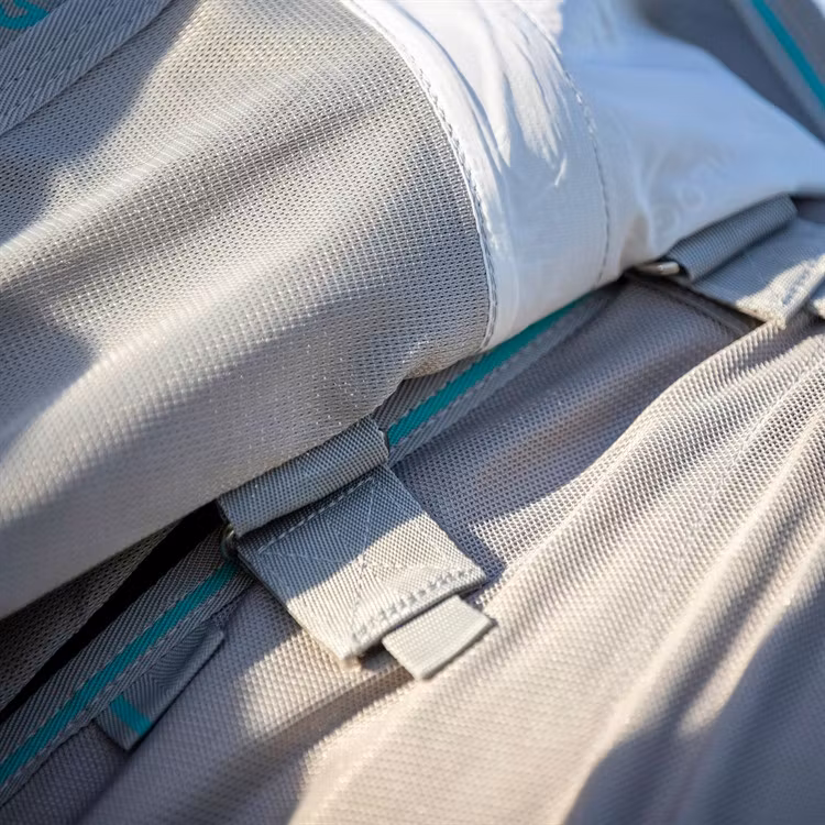 - Andningsbart fly-meshmaterial: Det stickade polyester-meshtyget skyddar mot flugor samtidigt som det tillåter optimal luftcirkulation. Täcket motverkar överhettning på varma dagar och håller hästen sval och bekväm.