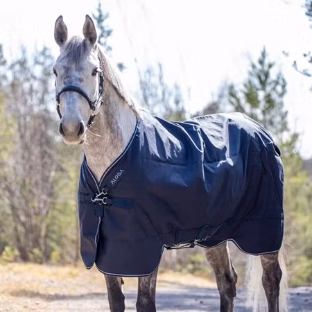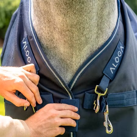 Pro Turnout 0g från Aloga Equestrian är deras mest slitstarka, lätta utetäcke designat för hästar som vistas utomhus. Yttertyget i robust 1200D polyester är vattentätt och andningsbart, vilket ger ett pålitligt skydd för hästar som sliter hårt på sina täcken.