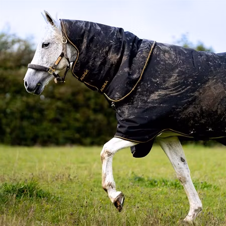 Pro Turnout 350g med luva är Aloga Equestrians varmaste och mest robusta utetäcke, utvecklat för att skydda din häst i tuffa väderförhållanden. Tillverkat i slitstark 1200D polyester ger det ett vattentätt och andningsbart skydd – perfekt för hästar som sliter hårt på sina täcken.