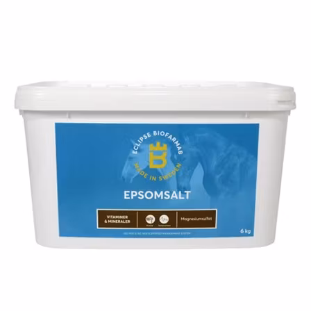 Eclipse Biofarmab Epsomsalt (MgSo4) 849 kr I lager. Lägg i korgen Dela Artikelnummer: 2164 Information Recensioner Kompletteringsfoder till häst. Innehåller 100% magnesiumsulfat (MgSo4). Kan även användas som saltbad till hovåkommor.