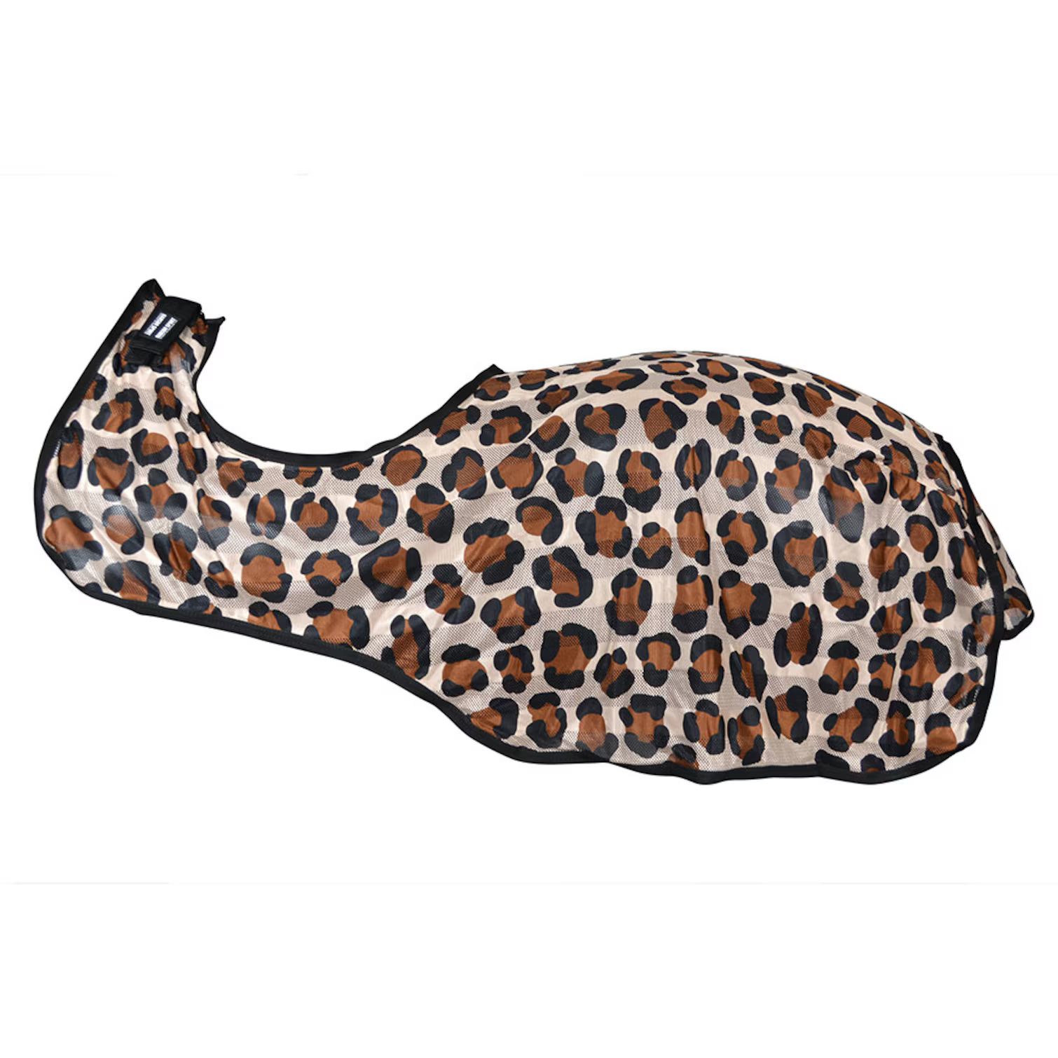 Klassiskt ridflugtäcke / nättäcke smidig polyestermesh som effektivt skyddar hästen mot irriterande insekter under ridning. Lekfullt leopardmönster. Konturskuren passform runt sadeln samt utrymme för skänkeln. Svansrem håller täcket på plats och förhindrar att det blåser upp. Designat med stort svansskydd samt kardborreband som knäpps framför framvalvet på sadeln.
