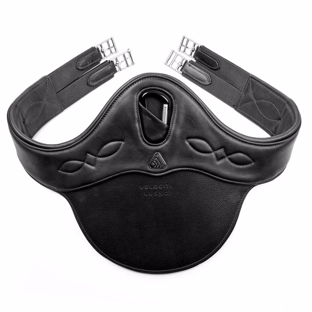 Velociti Lusso Pro Series Luxe magplatta är precisionstillverkad för hög komfort och prestanda. Den anatomiskt formade magplattan skyddar hästens undersida vid hoppning och ger en ergonomisk, naturlig passform. Mjukt innerfoder av kalvskinnsläder, tryckavlastande vaddering och rundade kanter ger ökad rörelsefrihet och minskar risken för skav.