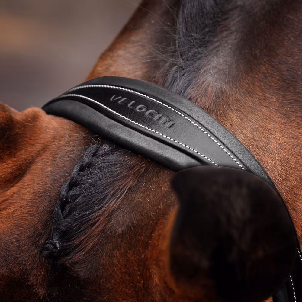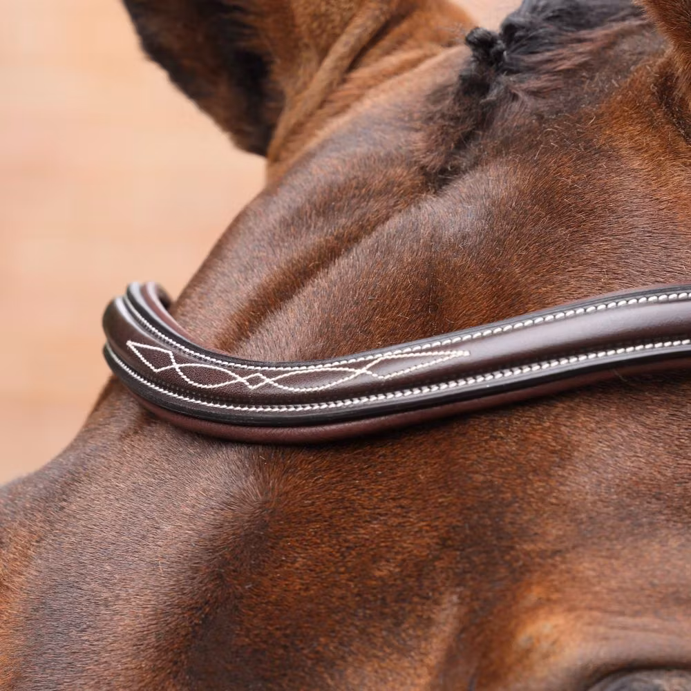 Tränset med snokrem är stilrent och designat för hög komfort, med generös vaddering som ger tryckavlastning där hästen behöver det mest. Den breda fronten fördelar trycket jämnt och den smidiga formen passar även hästar med smalare huvud.