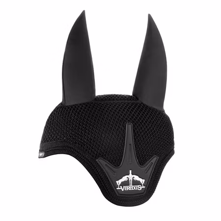 Veredus soundless flughuva med snygg VE-logga är virkad för hand och tillverkad i tvättbar bomull med hög andas-funktion. Öronen gjorda av ljudabsorberande material som minskar ljudintaget som annars kan distrahera hästen.