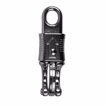 När den fjäderbelastade spärrhylsan förs ner öppnar sig haken helt.