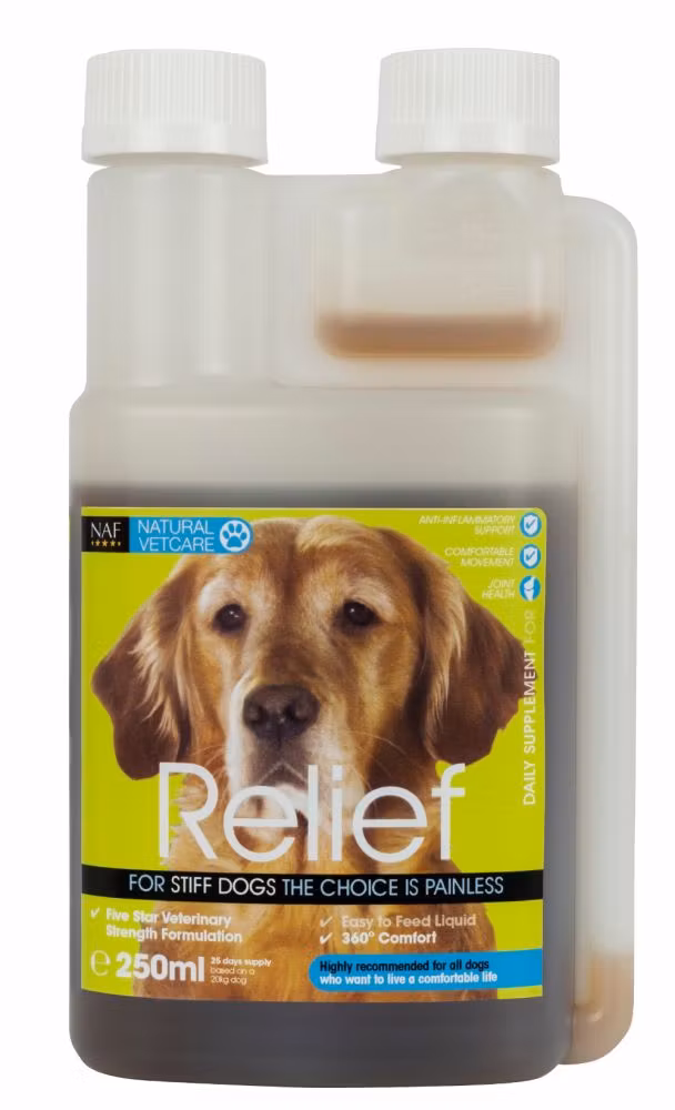 Relief är en kraftful örtblandning som ger stöd och komfort till hundens leder. Speciellt lämplig för den äldre huden med stela leder. Kan även användas initialt användas parallellt med ledtillskott som extra komfortstöd för hundar vid mycket påverkade leder.