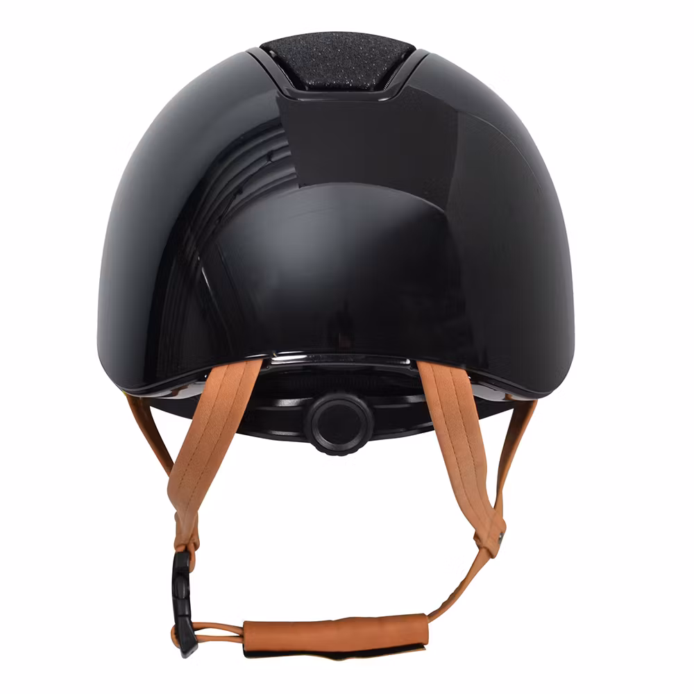 Ridhjälm med implementerat Mips-system. Elegant glansig hjälm med bred solskärm och gnistrande glittrande panel samt vackert glitterband runt skärmen. Designad med totalt sex ventilationsöppningar. Justerbart hakband i exklusivt brunt konstläder med trepunktsfästen samt snabbspänne. För optimal passform justeras storleken enkelt baktill med hjälp av rattsystemet. Avtagbart innerfoder av Cooldry-material, som torkar snabbt och håller huvudet svalt. Tillverkad av premium polykarbonat och utrustad med innovativt integrerat nässkydd. Godkänd enligt Mips, CE samt standard EN1384:2023.