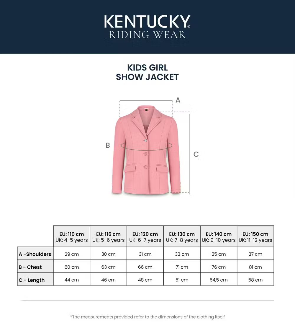Kentucky Horsewear Paris kids girl show jacket 1 679 kr Färg Old Rose Navy Storlek 110 116 120 130 140 150 I lager. Lägg i korgen Dela Lagersaldo: Artikelnummer: 3187