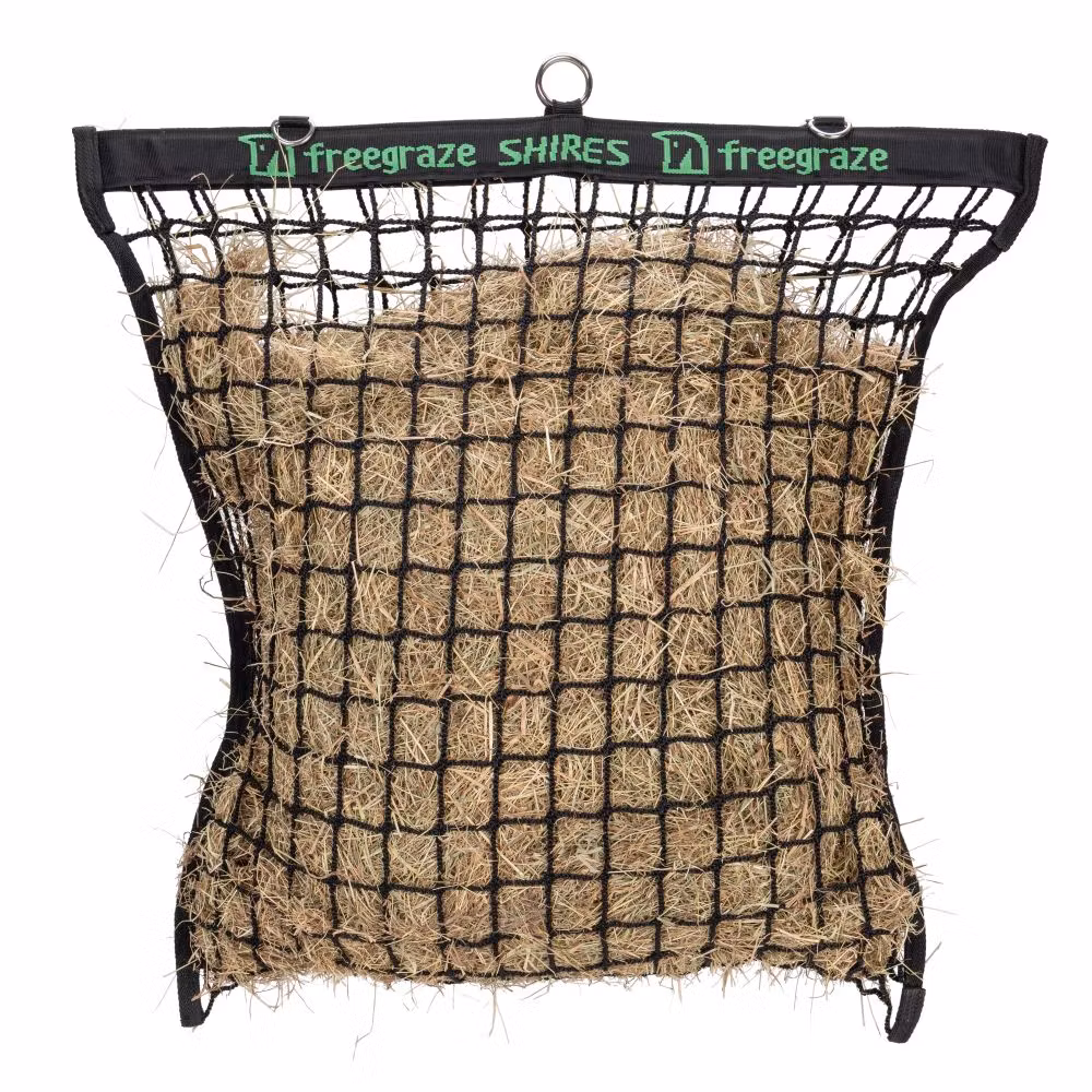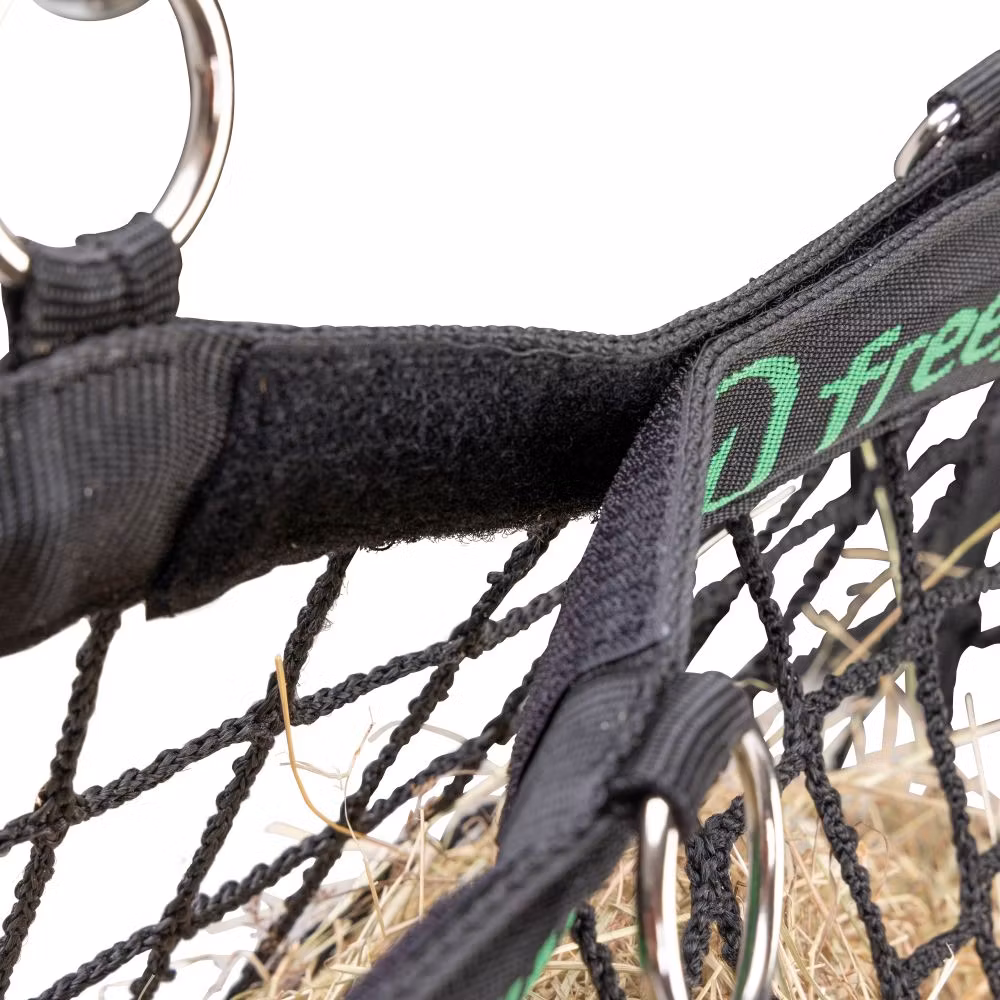 Dubbelsidigt, slitstarkt knutet nät i snörmaterial med små maskor och förstärkta fållkanter av slitstarkt band. Toppöppning med enkel påfyllning. Flera upphängningsalternativ beroende på plats och utrymme. Levereras med 2 justerbara upphängningsremmar med clips. Rutstorlek: 5 cm. Kapacitet: Liten = ca 3,75 kg Stor = ca 6,25 kg