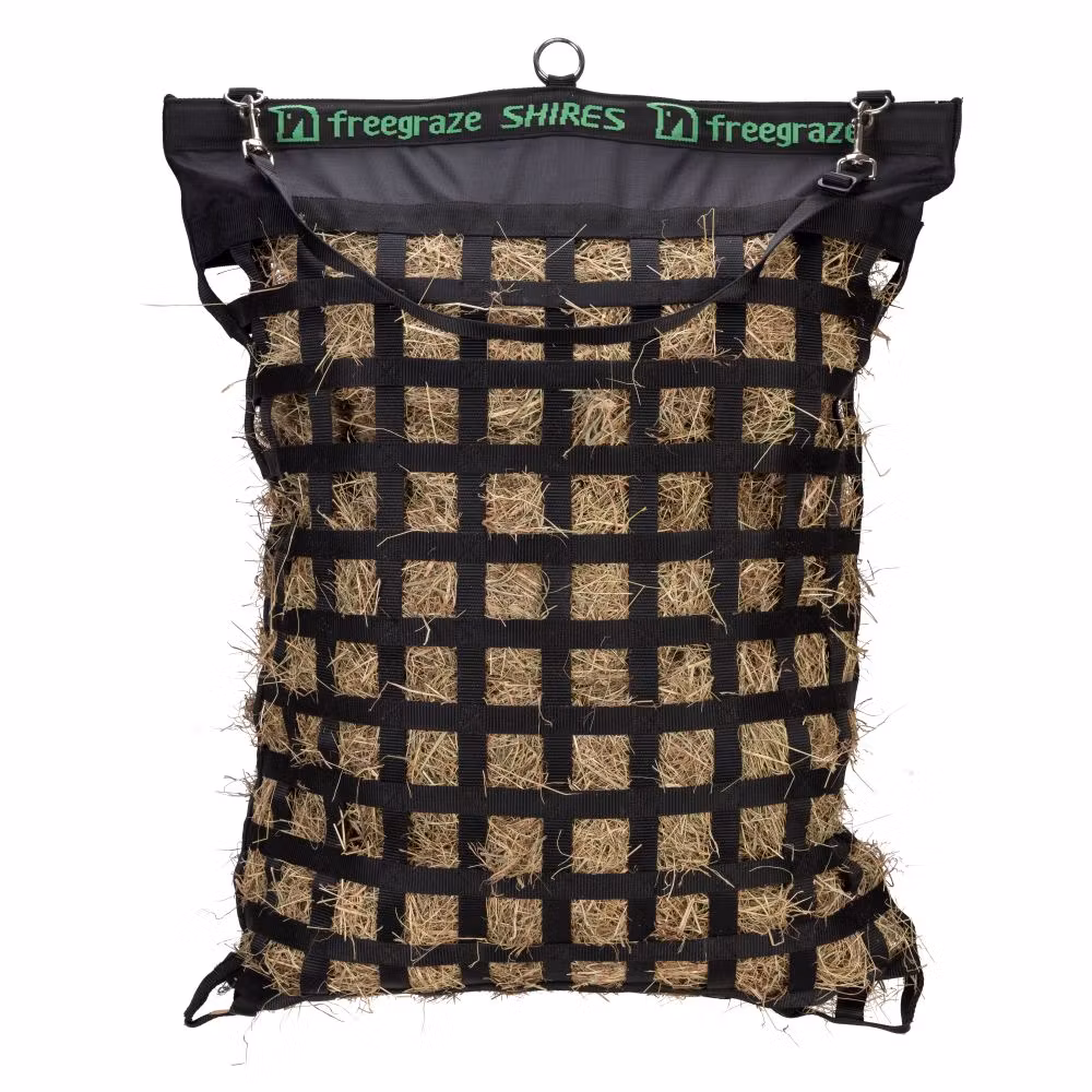 Dubbelsidigt, slitstarkt webbnät med små maskor. Djup toppöppning med enkel påfyllning. Flera upphängningsalternativ beroende på tillgängligt utrymme. Levereras med 1 justerbar upphängningsrem med clip. Rutstorlek: 5 cm. Kapacitet: Liten = ca 3,75 kg Stor = ca 6,25 kg