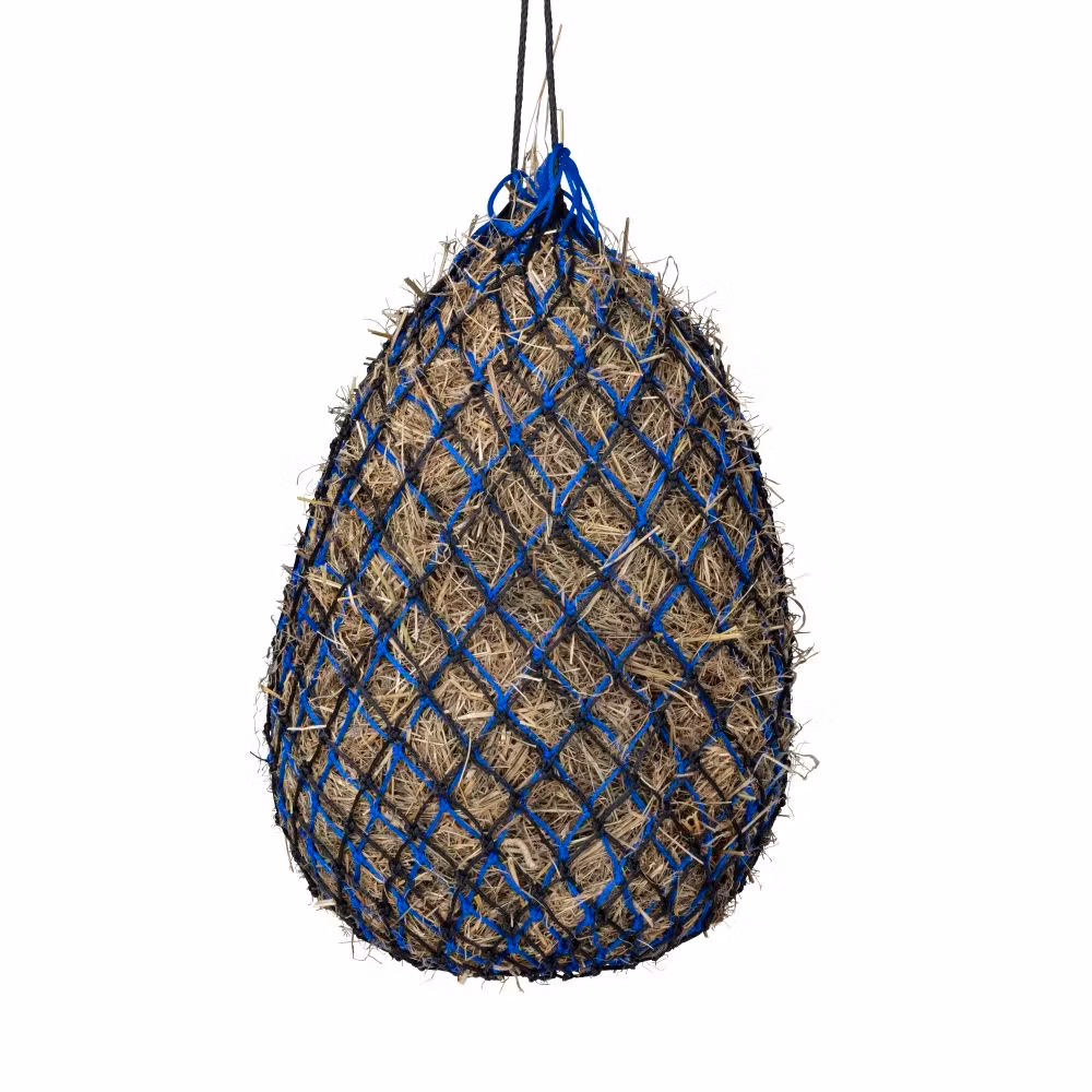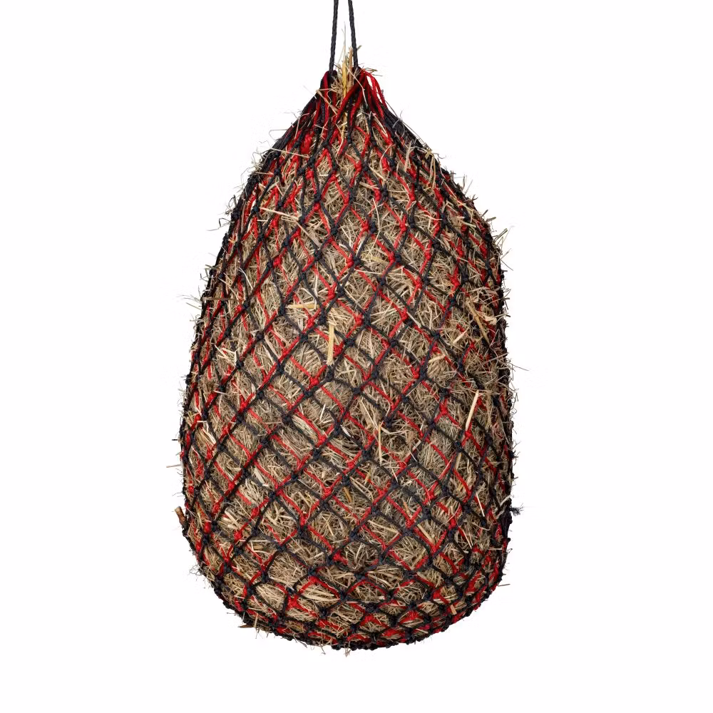 Detta dubbla hönät syftar till att öka utfodringstiden genom att minska konsumtionshastigheten. Det dubbla lagret skapar ett större motstånd, vilket gör att portionsstorleken blir mindre för varje munsbit. Perfekt för entusiastiska ätare och för att hålla den uppstallda hästen eller ponnyn sysselsatt längre Välj mellan tre maskstorlekar beroende på grovfodertyp eller nödvändig begränsning. Kapacitet: ca 6,5 kg