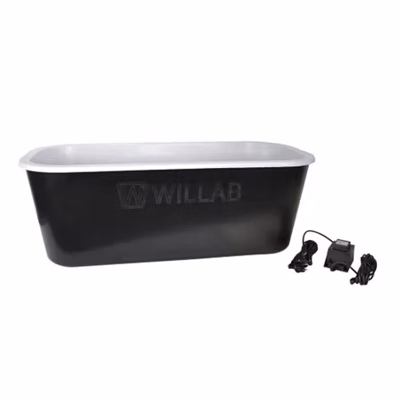 Värmebalja som kan användas utomhus eller i ouppvärmda utrymmen under den kalla årstiden. Tillverkad i livsmedelsgodkänd plast som är kraftig och isolerande. Baljan klarar ner till – 20 grader i stilla förhållanden. Inbyggd termostat som startar när den omgivande temperaturen är ca 3 grader. Rymmer 120 liter med 30-litersskala och står stabilt på en bred botten. Vattentät transformator, IP68, och sladd (total längd 10 m varav 5 m kontakt-transformator) ingår.