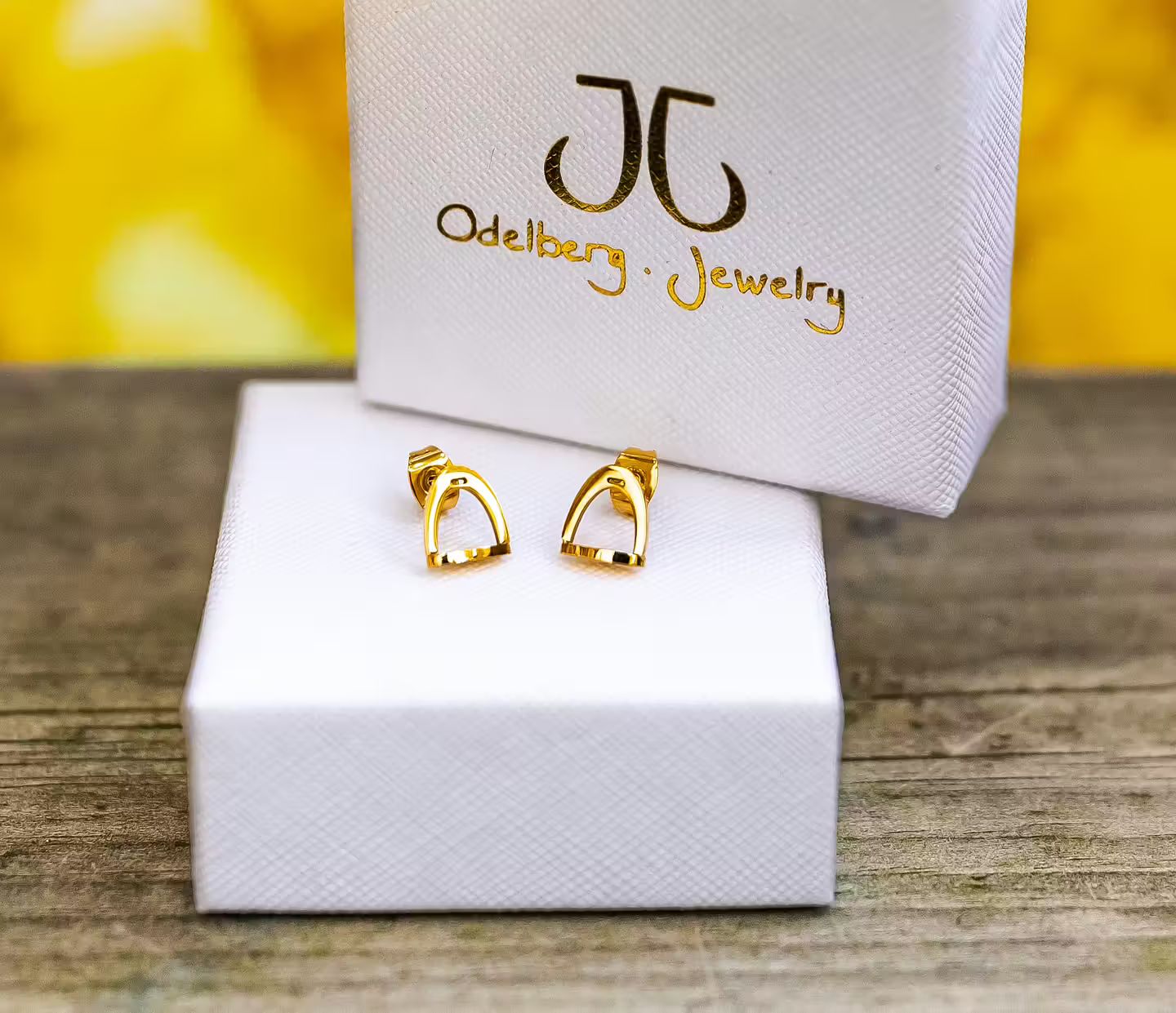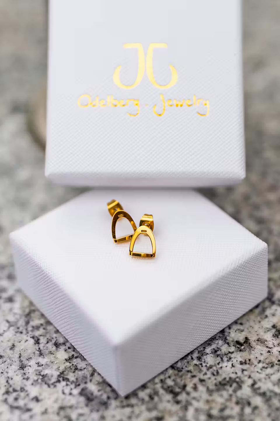 Guld - Material: guldpläterat stål. Storlek: Stigbygel ca 8x9 mm Pinne ca 10 mm Nickelfritt.